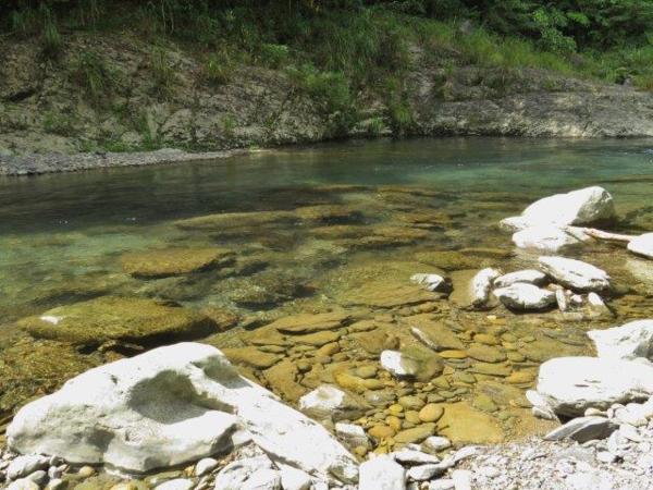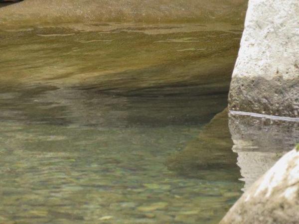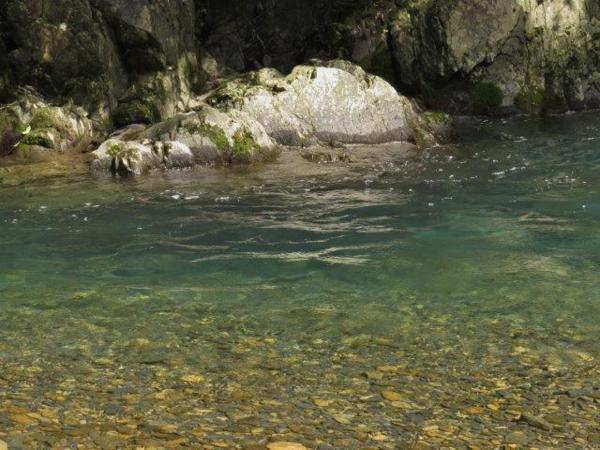 原決定一路開至13公里終點,然9.5K是賞景必停之處,溪水清澈,溪中石頭粒粒可見,水色從黃、綠藍至深藍,而石與樹的倒影更增添多種色澤,真不愧網友推薦為必賞的景點。