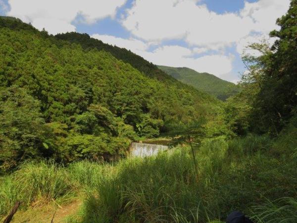 攔砂壩旁有條小徑是桶后越嶺古道,網上資訊走至6.7K可望見蘭陽平原,依我們體力與腳程無法一天走回全程,我們僅想隨性走一段,感受一下古道風景。