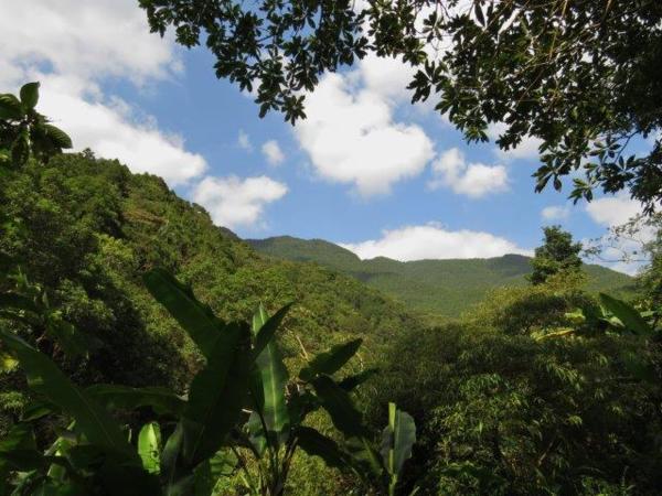 藍天白雲下的翠綠山谷