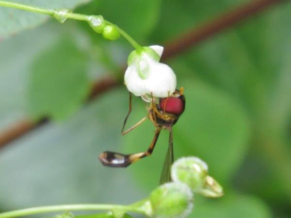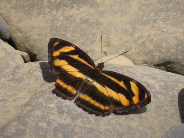 到桶后溪不僅得上網申請,亦得在烏玉檢查哨下車填寫登山資料,停歇時看到隻飛翔的漂亮蝴蝶,然鏡頭能補捉到的是網絲蛺蝶(石牆蝶)。
