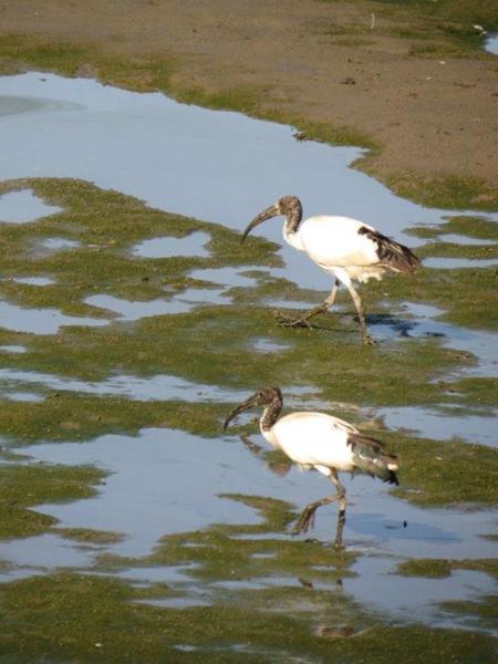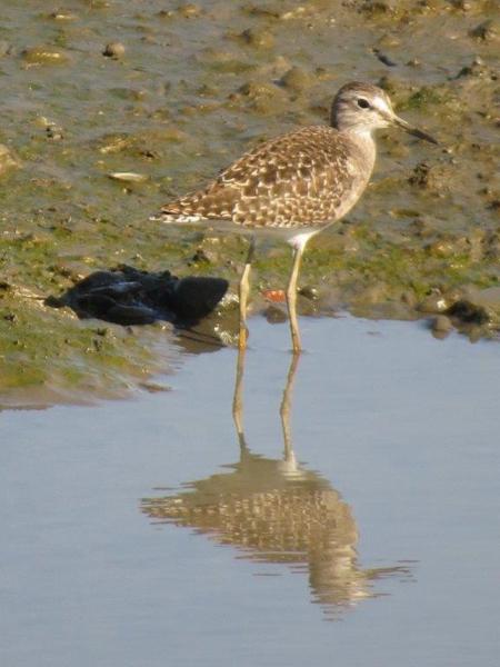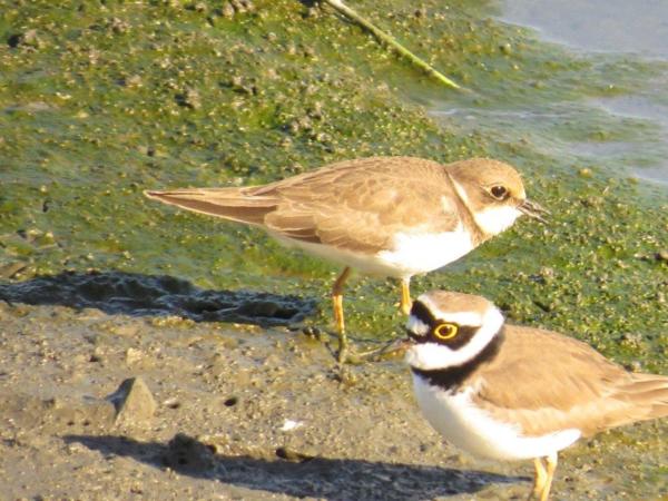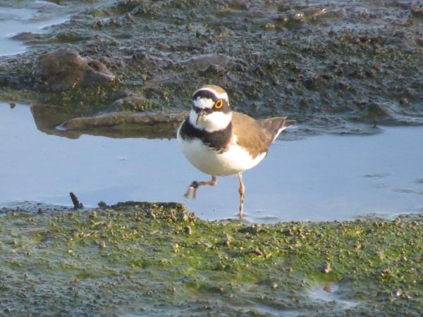 沼澤地上出現點點移動的是小環頸鴴和東方環頸鴴,它們邊走邊覓食,動作速度都很快。