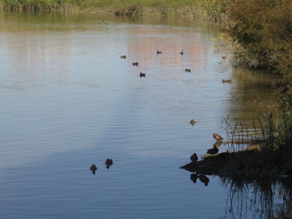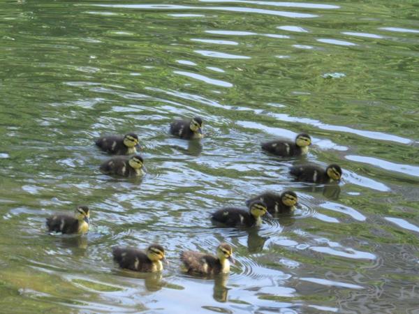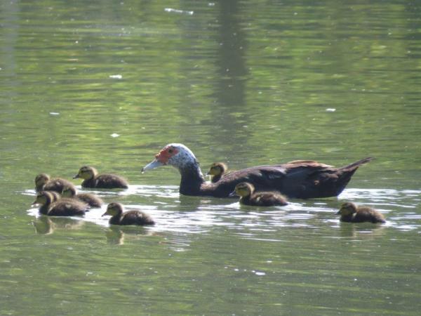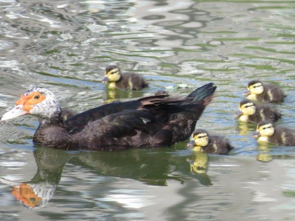 沒想到此季節可看到母鴨帶小鴨出巡,小鴨到岸邊飽餐一頓後,再隨在母鴨水上出遊著。