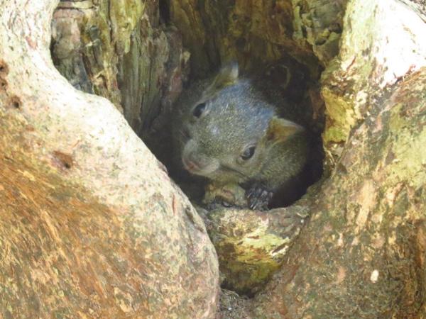 特別的是看到松鼠的家,它小心易易探出身來,一見到人就馬上縮回洞內。