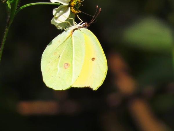 深黃與淡黃組合的圓翅鉤粉蝶(紅點粉蝶)