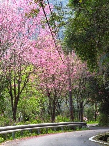 往福山途中粉紅櫻綻放於路旁&櫻花巷中的亮麗櫻群