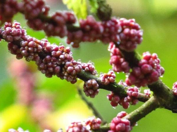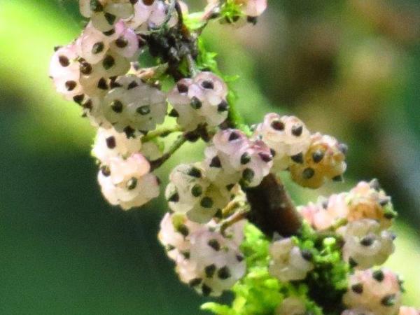 溪水邊的樹幹滿是果實,鏡頭拉近才知其美