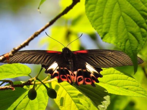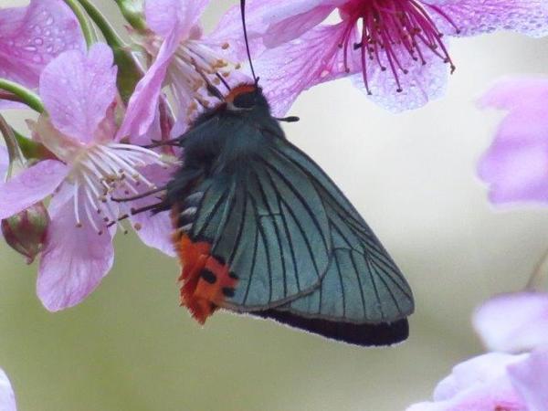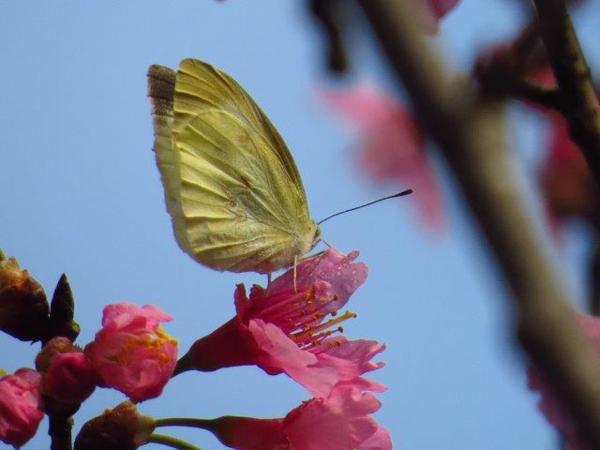 停歇於櫻葉上的大鳳蝶,續飛舞於櫻花中