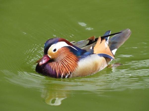 冬天不見蹤跡的鴛鴦,春夏就見漂亮身影,光彩的羽翼吸睛百分百。