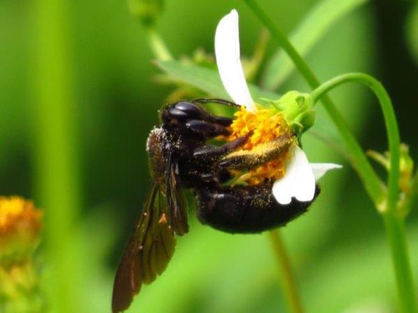 回途鬼針草上沾花粉的黑蜂&弄蝶