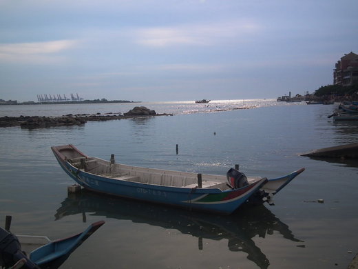 我們沿著海堤岸漫步著,坐於堤邊等著夕陽落於海面上,但運氣不佳無緣看到紅紅夕陽與燦爛雲彩,太陽在半空中就已沒入雲層了。