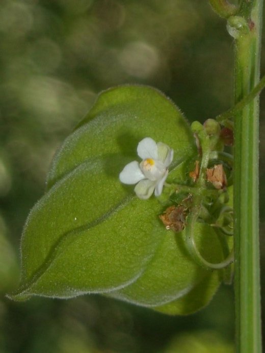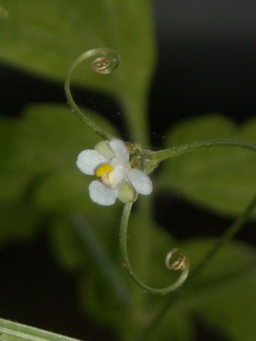網上的倒地鈴資訊:無患子科(Sapindaceae)倒地鈴屬(Cardiospermum),別名:風船葛、假苦瓜、燈籠朴、白花炮仔草、泡泡草、鬼燈籠…等。葉有柄,互生,二回三出羽狀複葉,小葉具有尖銳鋸齒。夏季開花,花腋生,聚繖花序,花梗甚長,近花的地方有2枚對生之卷鬚;花萼四片,花瓣四片大小不同,白色;雄蕊8枚,花柱甚短,3裂,子房3室。果實: 朔果為倒卵形,具三稜角,整個澎脹如氣囊。種子呈圓珠狀,未成熟的種子為綠色中央有白色心形斑,成熟後種子為黑色,仍具白色心形斑。通常無患子科植物都是高大的喬木,像龍眼、台灣欒樹、無患子等等,倒地鈴卻是無患子科中極少數的蔓性草本。