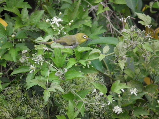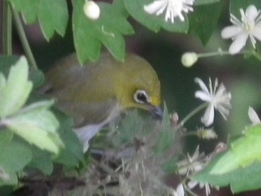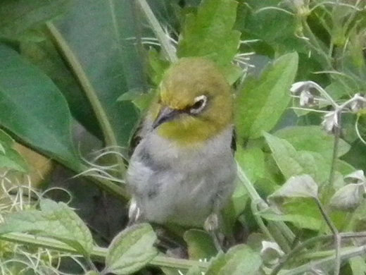 網上資訊:俗稱〝青笛〞或是〝青笛仔〞體長10公分。清脆的綠色由頭部、背部延伸至尾部,在喉部有較明亮的黃色,眼框周圍為白色,故名為綠繡眼,喜歡成群活動。體型相當小巧,經常在樹梢跳躍,啄食昆蟲、果實,亦食花蜜。叫聲「啾、啾」。鳥諺:荒山出俊鳥。