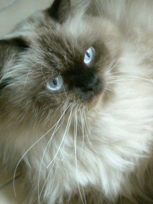 既然是竉物就是要人竉的,所以貓兒喜歡吃的東西-乳酪、魚、蝦、牛、雞、豬肉等,偶而會餵它們,養成了我們吃東西時,就會坐著我們身旁看。不過,兒子禁止我們餵食,因而僅偶而給少量而已。