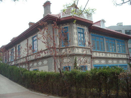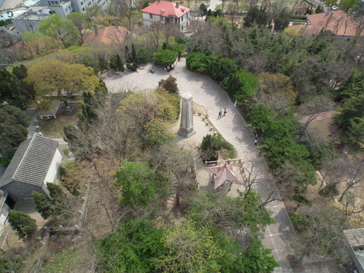 一位四星的可愛女孩為我們導覽,介紹煙台山先後有17個國家在煙台設立領事,目前遺留有英、美、日、法、德、丹麥6個國家在煙台山修建了領事館、官邸樓等歐美建築。她說不走回頭路,所以請我們緊跟著她走,首先是英國領館、一棟介紹國戲的樓,同行大都沒興趣,我和姊夫卻覺得既來的,也要走馬看花去瞧瞧,樓上有平戲的戲偶。當地亦是龍脈,她分別說明龍尾、龍身與龍頭所在。而後上了燈塔,煙台山東、北、西三面環海,可全覽其四周景觀,下了燈塔,庭院種有不同的櫻花,再前去丹麥館,有縮小版的小美人魚。