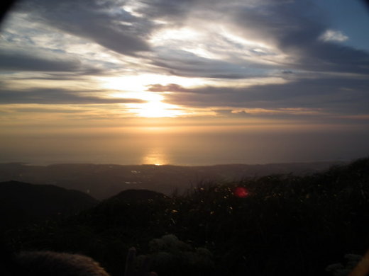 半山上就看到耀眼夕陽,很想和先生說我們就在此停車吧,但也知道登高才有好視野,於是稍壓急躁心情,到了山頂才知一群人早已在欣賞著美景了。