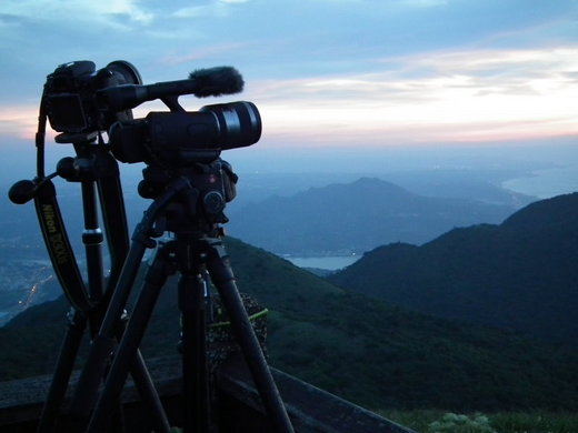 觀景台穩當地架設著三台照像機,自動記錄著眼前夕陽的變化。而我卻被強風吹的有點冷,只好四處走動一下,感受一下不同的景色下的夕陽。