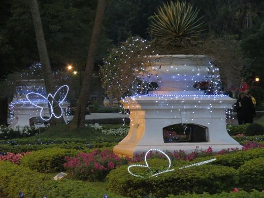噴水庭園前多種花卉裝飾的童話花園,其中有小矮人、不同品種的聖誕紅搭配著不同花草,有一特別的花為白頭翁,花色有紅、桃、藍…看半天不懂為何其名是白頭翁,後上網查乃其結實時有長鬚著生,成熟時呈銀白色,故有「白頭翁」之稱。消壓塔與景觀平台則有風車和鄉村農舍,其裝飾花卉則以菊花品種較多。