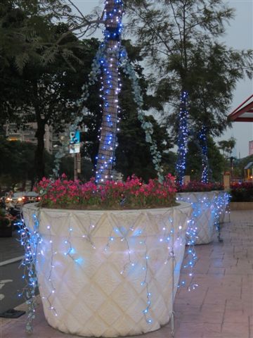 下山後,發現平地一樣有紅葉,看其樹皮光滑似九芎,但沒看到樹名,所以也不確定了。原打算出園了,卻看到聖誕樹展現不同的燈光,園區的裝飾LED也開始閃亮著,於是繼續留連在這美麗燈光中。