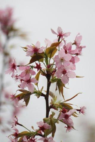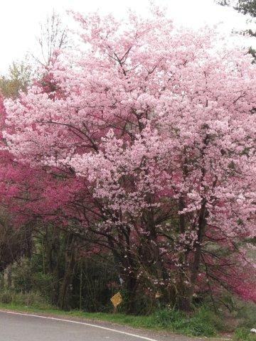雖已無一大片紅粉櫻花盛開況,亦無繽紛落葉飛舞,但未抵達武陵前就有兩顆盛開櫻花迎人,武陵內更有多株晚開櫻花怒放著。