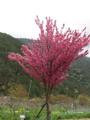 不再是車潮人擠,我們可以很悠閒尋找角度,記錄著目前的紅粉佳人、緋寒櫻、霧社櫻、櫻桃花…等,不僅如此,高山植物區有白色的水蜜桃花,武陵山莊內有一顆盛開的桃花,水果區更有一大片的桃花,四月才有的紫藤也在農莊文物館串串垂掛綻放,茶莊旁更有刺梅和滿滿白色的梨子花。