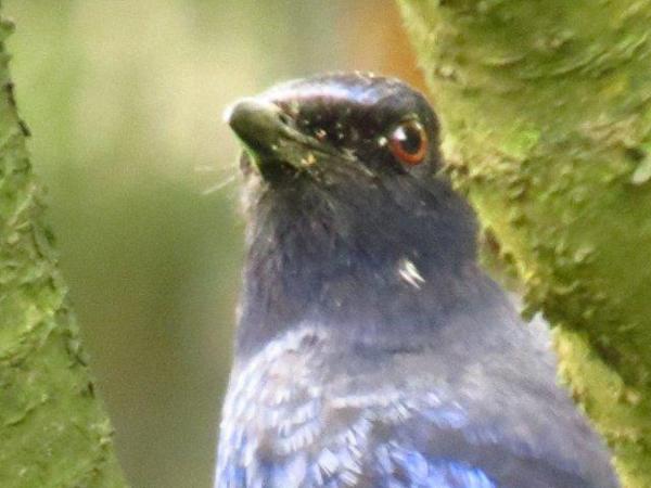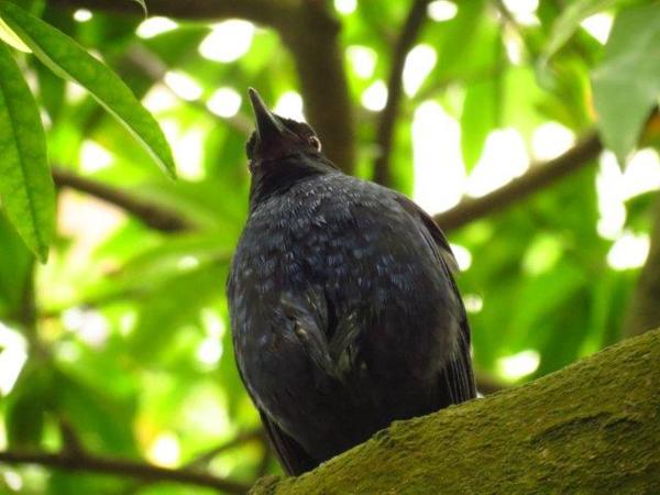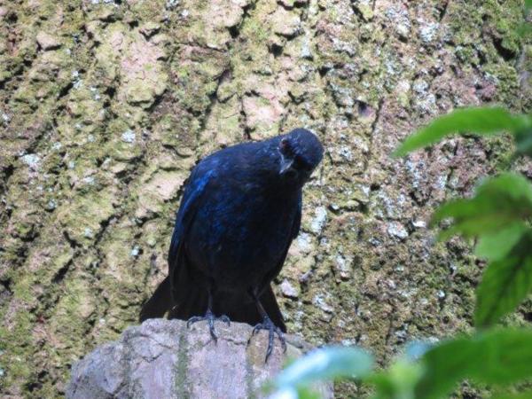 第一個周日,紫嘯鶇一早就出來和我們招呼,草坪、石頭上,溪水上,甚至樹梢上都有其影蹤。我們到處追尋補捉其身姿,當其在樹上時,路過的人看我們拍照,和我們說:她路過,鳥就會飛了,當然沒理由不讓路人行走,但此紫嘯鶇不怕人,十足當個好”麻豆”,讓我們盡情補抓其當時模樣,而我的配備和速度無法拍其飛動狀,於是照了它的大頭照,記錄著它的風采與配合!