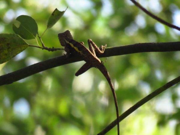 驚異的有跳於樹上的蜥蜴和太陽落映於池內的夢幻。