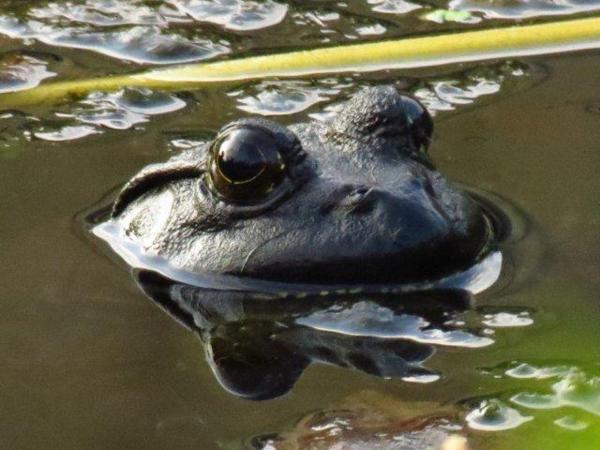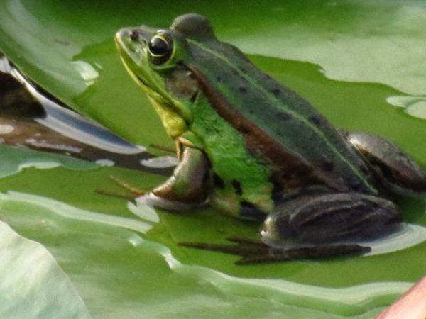 前陣子在植物園生態水池秀恩愛的蛙們,上星期再前往,不僅看不到孵化的蝌蚪,而先前的蛙們也都不見了。唯一有的青蛙,是在蓮花上的,還有蓮花池上露出眼睛的牛蛙。