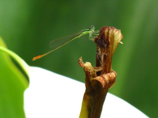 頂湖海芋花況雖已進尾聲,在我們眼裏花還不少,但聽不到呱呱聲,僅有水裏的蝌蚪、黑色小小青蛙跳著和停於葉邊的豆娘。