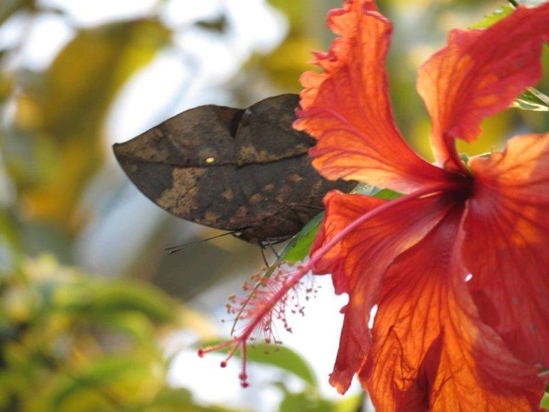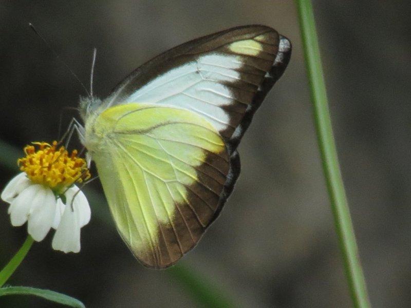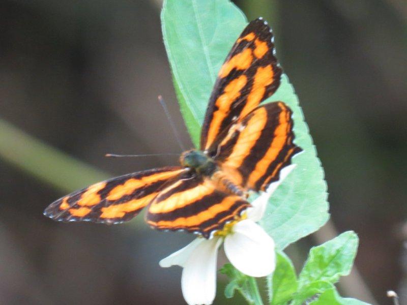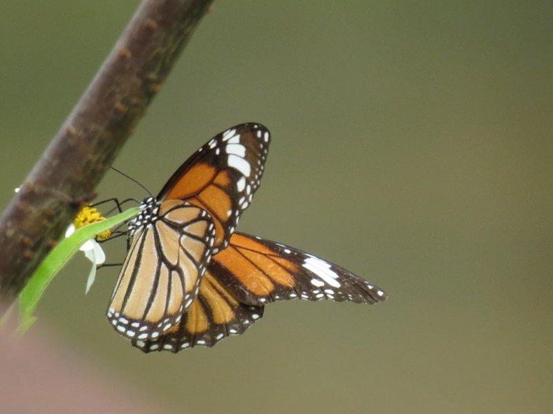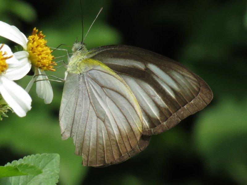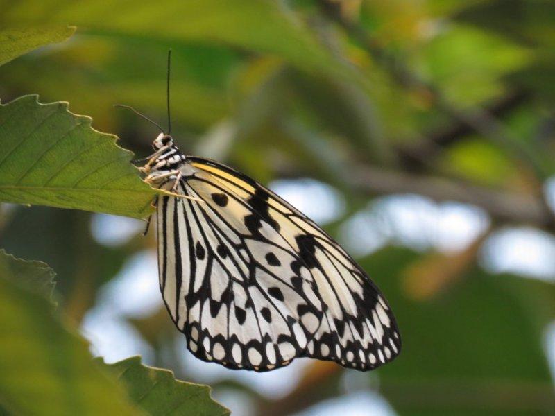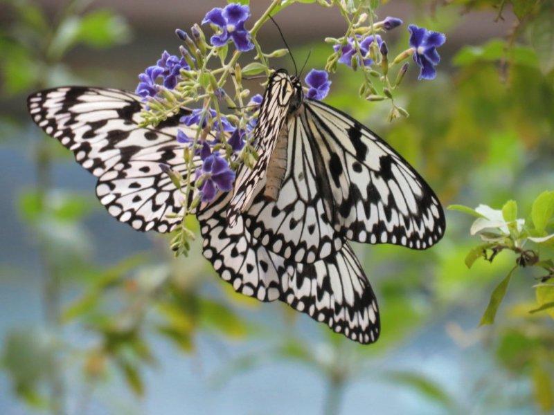 雨天去動物園的昆蟲館,發現此為蝴蝶的桃花源,有很多外面很少見到的大白斑蝶和枯葉蝶,大白斑蝶有大有小,往往兩三隻大斑蝶吸蜜於同一金露花上,或者飛至和青斑蝶一起。