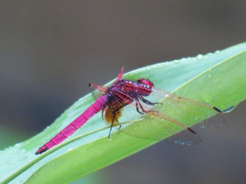 好幸福的蟲兒,餐食隨處可得,還能享有自由飛翔,且不受刮風下雨之折磨。館外則是雨中紅蜻蜓。
