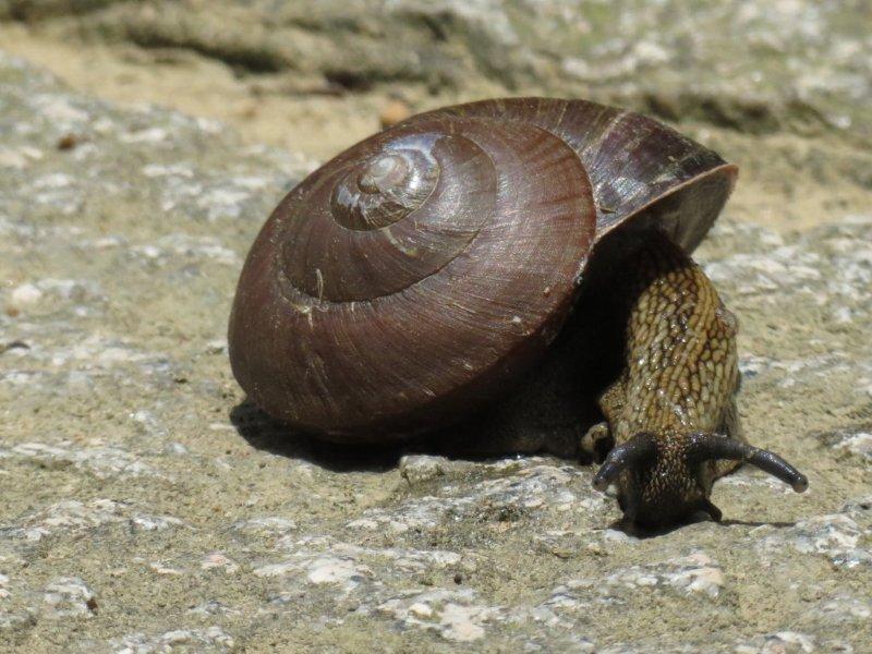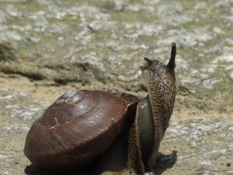 蝸牛似乎被晒到昏頭的,於是把它移至樹上了。