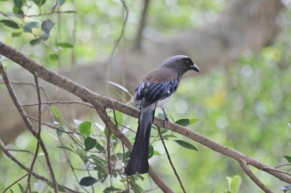 回途中,聽見樹鵲聲,尋覓到樹中棲息美麗的樹鵲。