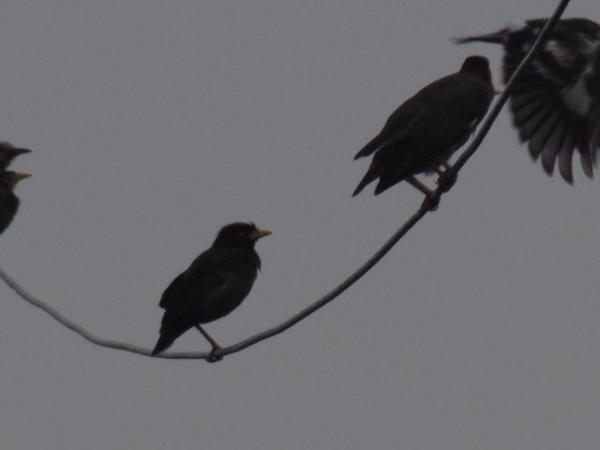 再至貴子坑大排,天下起雨來,但沒減我們賞鳥興緻,拿著傘在附近公園綠地尋找著鳥兒們,也僅看到八哥,而且只要我們稍走近,就飛走了。