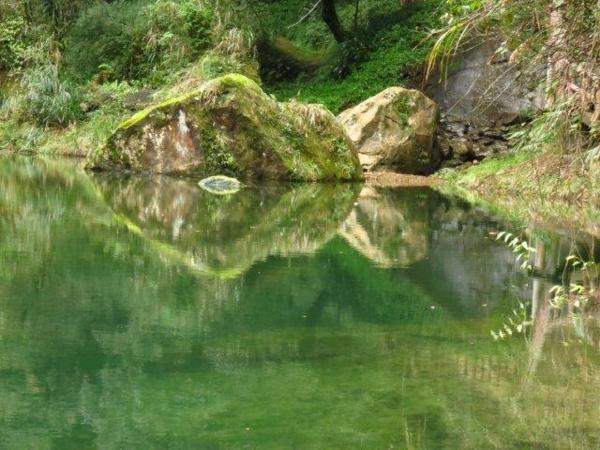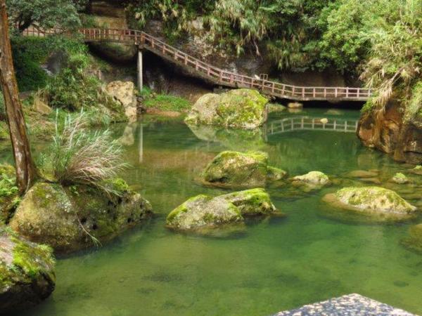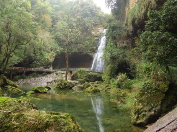 好多年前曾去過杉林溪,有天地眼照片,但其它景已無印像了。海拔1600-1800公尺的杉林溪,下午常雲霧迷濛。雖住宿一晚,但地方大且時間有限,我們僅走了石井磯步道至青龍瀑布,而後搭車至牡丹園區,再步行至松瀧岩瀑布、千古紅檜和天地眼。