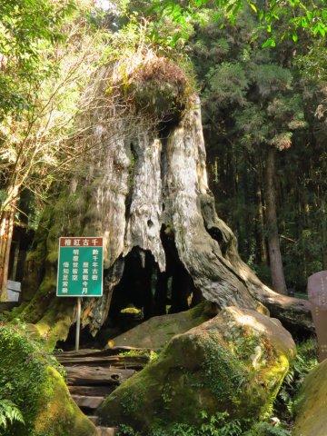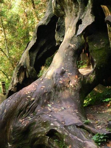 千古紅檜已被燒過,然其盤根仍屹立不搖。