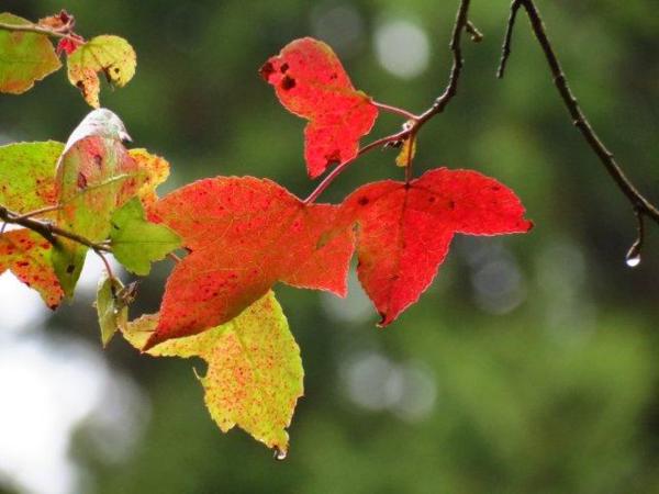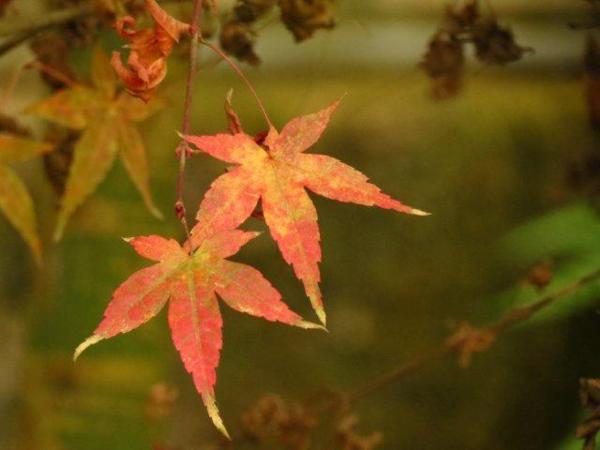 到處可看到葉牡丹,雖大部份的楓葉已掉,但陽光下的楓槭依舊豔紅。