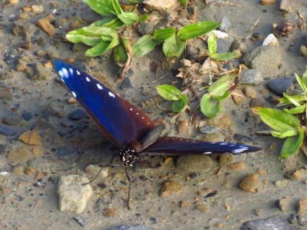 有花香當然也要配鳥語,看到了鳥有冠羽畫眉、鉛色水鶇、小燕尾和草坪上不知名的鳥,而翠綠鳥有點像五色鳥,但叫聲卻不像。難得的是抓拍到展翅的紫斑蝶和奇異顏色的蛾。