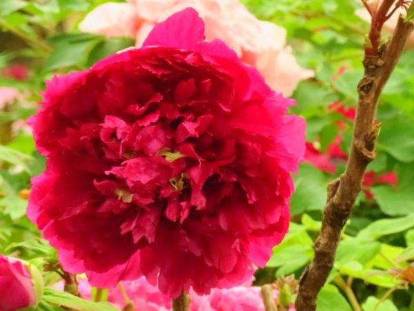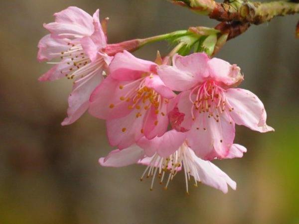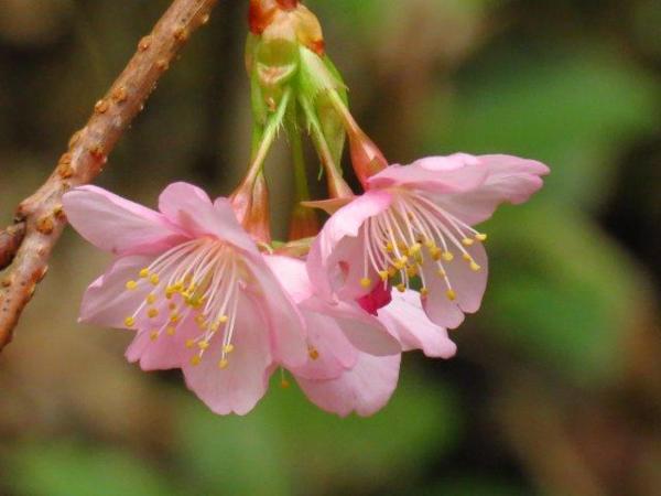 更意外的是:有早開的山櫻和垂櫻;3-4月才會開的牡丹花竟然在寒冷的12月就見到各種不同顏色品種牡丹花,和牡丹園區周圍不同顏色的金鐘花。