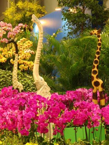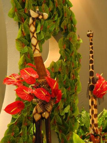 夢遊仙境:由飄洋過海的火鶴花與長頸鹿組合,在這溫室水霧中呈現出夢遊自然的仙境。