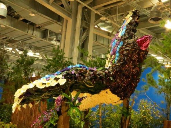 一入場就被三隻"藍鵲"所吸引,此展區為陽光舞者:由藍鵲舞出站姿、展翅和飛翔,搭配多層次森林和繽紛花草表現出對台北的希望與朝氣。