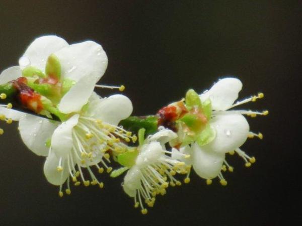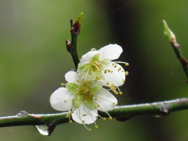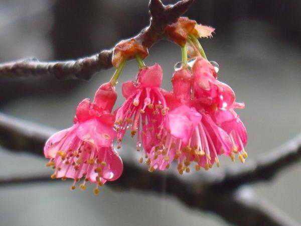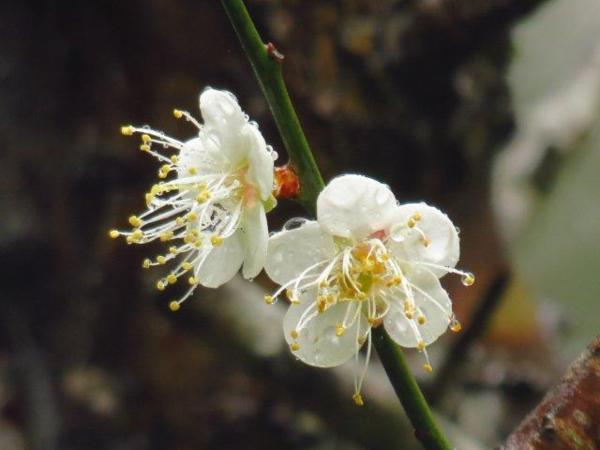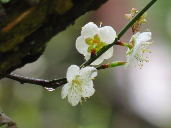 濕冷的天氣,加上天雨路滑,但賞花的興緻沒受天氣所左右,漫遊其中,慢慢欣賞著雨中含珠垂淚的白梅及滿園的花香;也能看到早開的山櫻了。