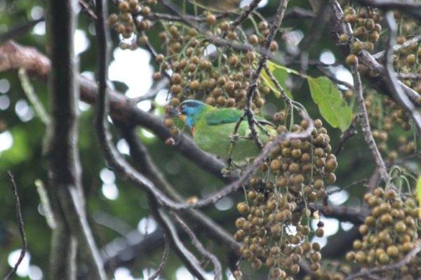 人跡稀少,賞鳥的機會大增,搖尾擺頭的灰鶺鴒從路上跳飛至石桌上,樹幹上捉蟲的小彎嘴畫眉,更有樹上採果的五色鳥,陽明山上真是個鳥語花香的世界。