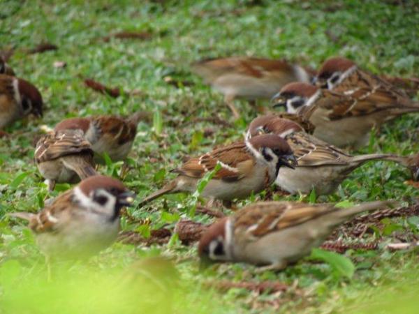 很幸慶中正紀念館沒下雨,廣場內水塘邊不少全家出外活動,孩子們在塘邊餵魚,吹泡泡,或照下不怕人的夜鷺,其凝視池內的各種表情。不怕人的鳥,還有每次來此都能遇見的黑冠麻鷺。樹上則聚集不少鳥,草坪上一群麻雀覓食,嘰嘰喳喳聲為這灰白的天空及綠草地帶來了熱鬧與生氣。