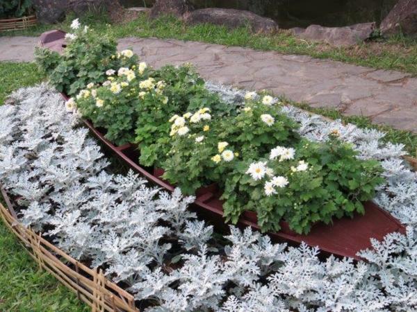 隨波逐菊區內有各種貝殼裝飾著不同的菊花,竹編的魚兒,金光閃閃魚鰭及船隻呈現出海裏美麗奇異世界。