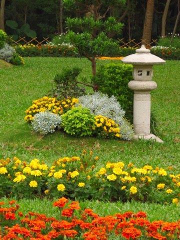 官邸大門前的庭院和大型風箏造型似乎走入日本庭院,大大小小菊傳達著花香秋意。