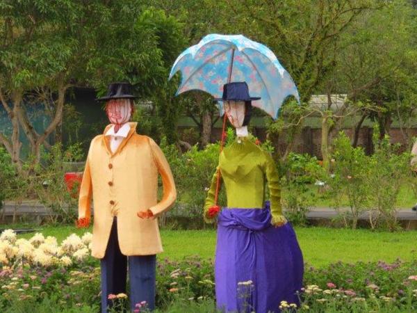 官邸菊展年年觀賞,今年不例外菊展第二天就去了。然往常一大早前往,人較少而這次卻是中午過後才抵達,要走過湖畔菊影區時,就得緩緩前進,於是轉往玫瑰園內以避開人群,想等傍晚人漸少再好好欣賞園區菊展。