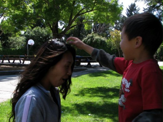 吃完中飯, 我們到公園慶祝"墨西哥"式的復活節. 我們不玩藏蛋, 找蛋遊戲. 而是玩拿以挖空染色的蛋互相"砸頭", 然後蛋裡的彩帶就會留在頭上, 代表好彩頭.