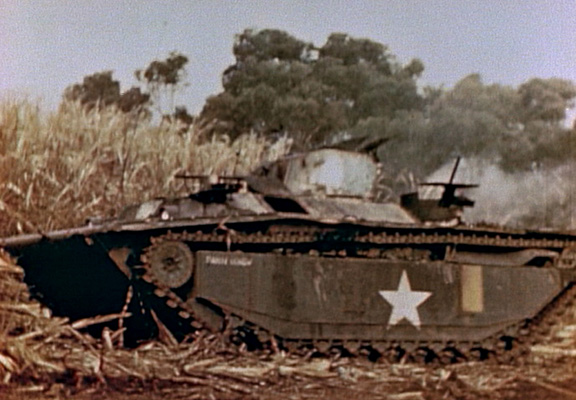 兩棲坦克(LVTA)登陸後,發現擋在前的黑色沙堤高達30呎,陡角有15度。履帶在火山灰沙地無抓地力,無法爬過沙堤,只得退回海裡,從水面以37mm加農砲發射掩護火力。