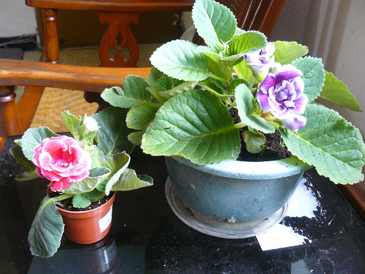 大岩桐移植後開花與新購小盆栽比較