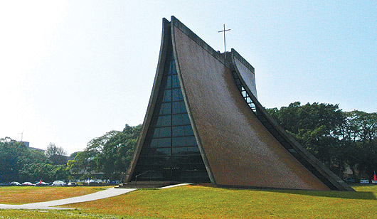 東海大學的路思義教堂今年滿五十歲,這座「拋物雙曲面」的薄殼式建築,完全靠人工精算一磚一瓦打造,建築最薄處只有廿公分;完工後,工人怕拆了鷹架建築倒塌,竟沒人敢拆。